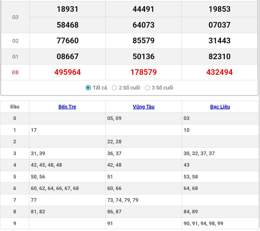 - Thứ 3 tuần này có 3 đài Bến Tre, Vũng Tàu, Bạc Liêu