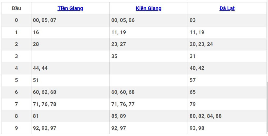 - Chủ nhật do 3 đài Tiền Giang, Kiên Giang, Đà Lạt Lâm Đồng.