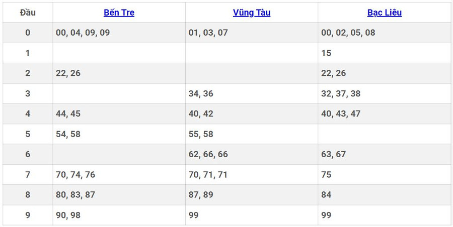 - Thứ 3 tuần này có 3 đài Bến Tre, Vũng Tàu, Bạc Liêu