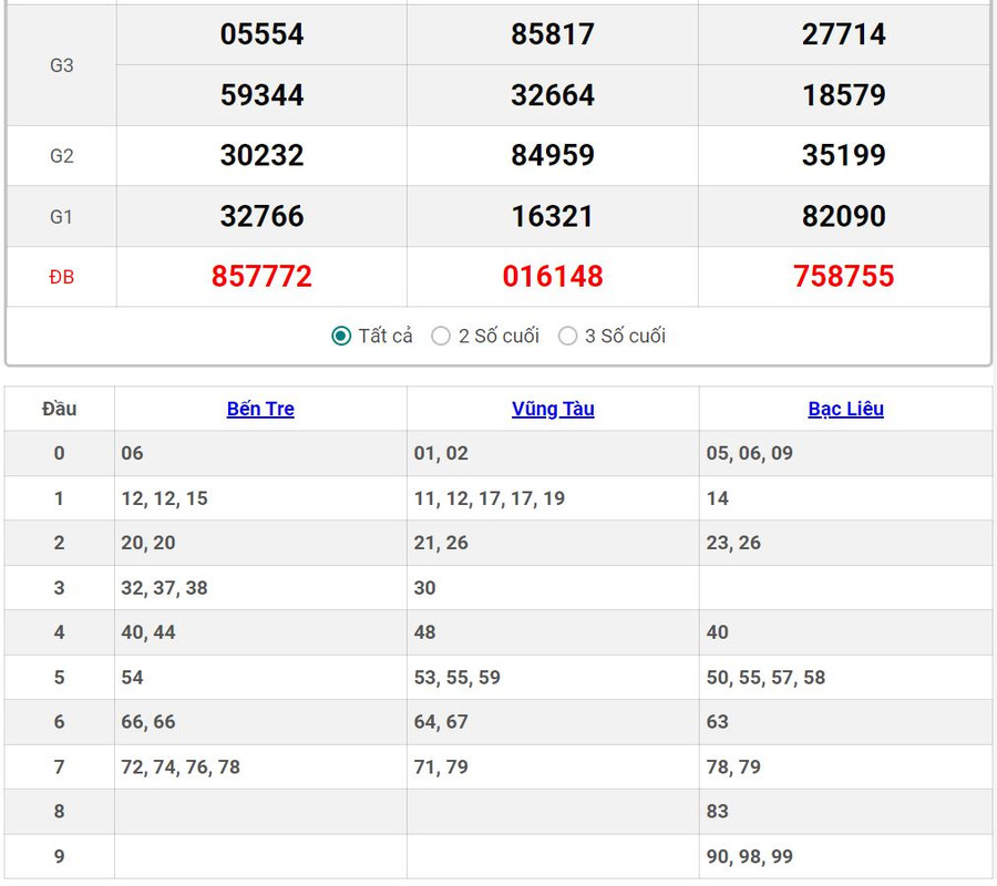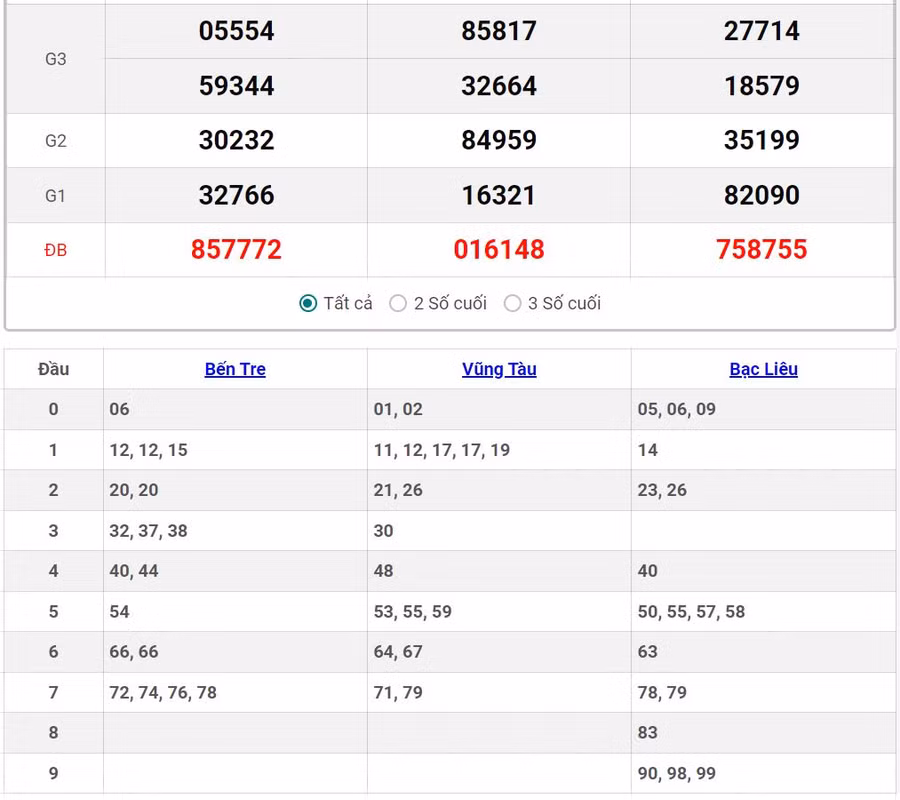 - Thứ 3 tuần này có 3 đài Bến Tre, Vũng Tàu, Bạc Liêu