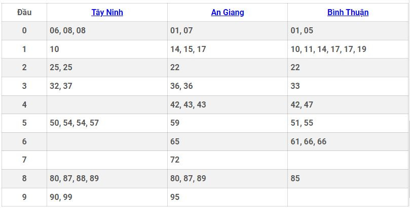 - Thứ 5 do 3 đài Tây Ninh, An Giang, Bình Thuận