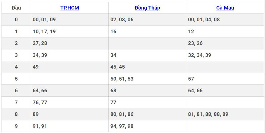- Thứ 2 hàng tuần có các đài TP HCM, Đồng Tháp, Cà Mau