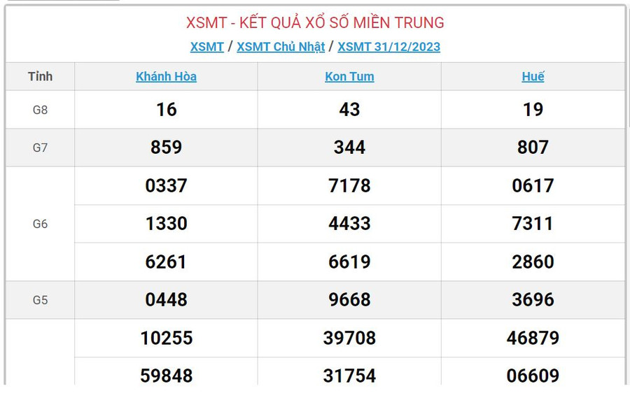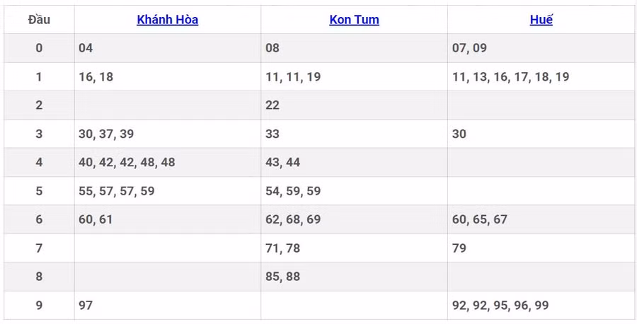 - Chủ nhật quay thưởng tại Huế, Khánh Hòa, Kon Tum.