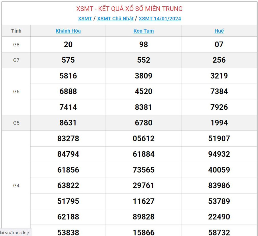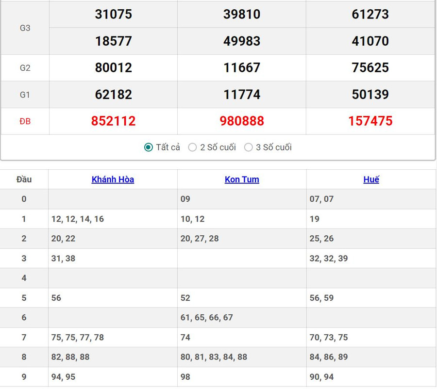 - Chủ nhật quay thưởng tại Huế, Khánh Hòa, Kon Tum.