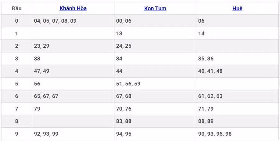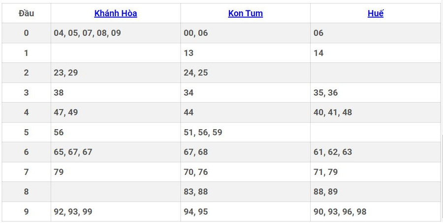 - Chủ nhật quay thưởng tại Huế, Khánh Hòa, Kon Tum.