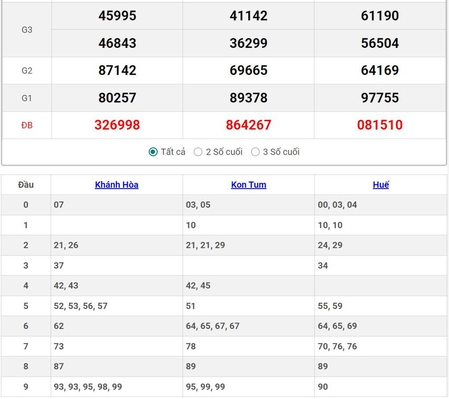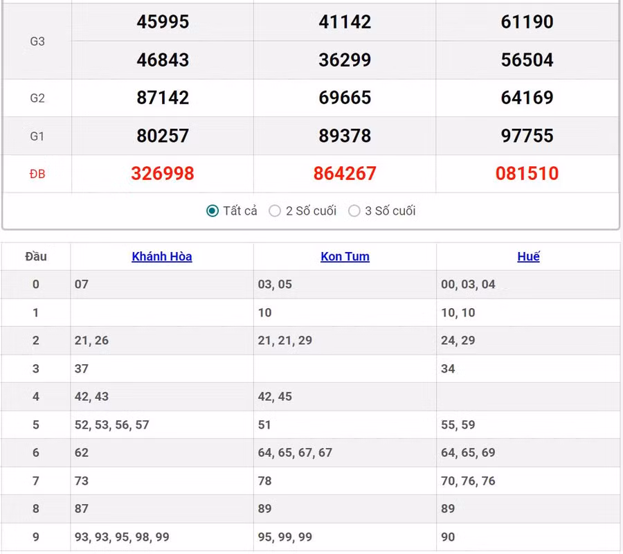 - Chủ nhật quay thưởng tại Huế, Khánh Hòa, Kon Tum.