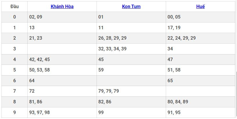 - Chủ nhật quay thưởng tại Huế, Khánh Hòa, Kon Tum.