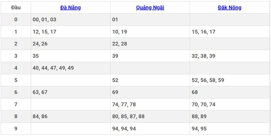 - Thứ Bảy quay thưởng tại Đà Nẵng, Quảng Ngãi, Đắk Nông