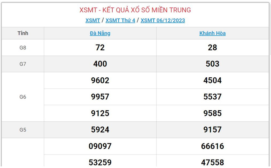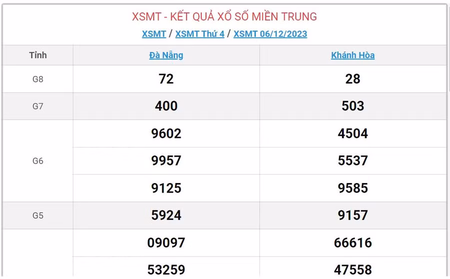 Trực tiếp kết quả XSMT hôm nay 7/12 - XSMT 7/12 - Xổ số miền Trung thứ Năm 7/12/2023 - KQXS miền Trung hôm nay 7/12