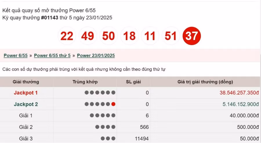 Xem kết quả xổ số Vietlott Power 6/55 ngày 1/2, theo dõi KQXS Vietlott mới nhất trên Báo Giáo dục và Thời đại để không bỏ lỡ thời gian nhận thưởng.