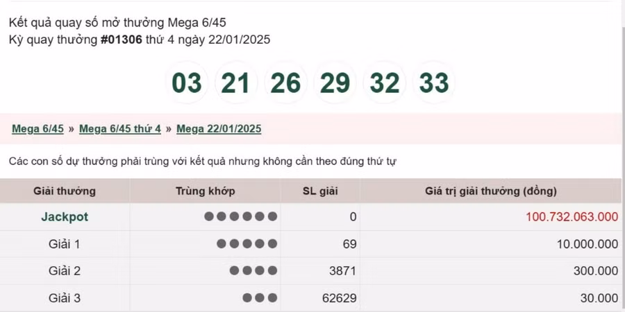 Vietlott 24/1 - Xổ số Mega 6/45 24/1 - Vietlott Mega 24/1 - Kết quả xổ số Vietlott thứ Sáu ngày 24/1/2025D