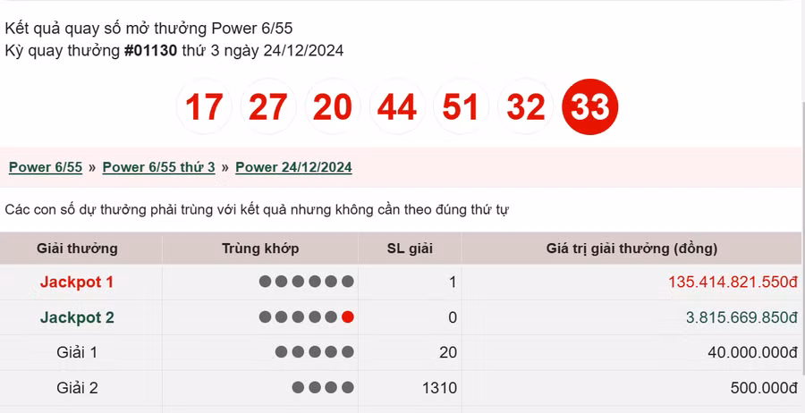 Kết quả và giá trị giải thưởng Vietlott hôm nay (27/12) sẽ cập nhật đầy đủ sau 18h30.