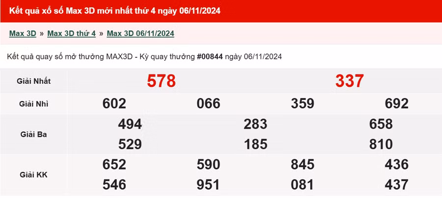 - Giải ba: Các vé trùng 3 trong 6 số đầu tiên, trị giá 50.000 đồng.