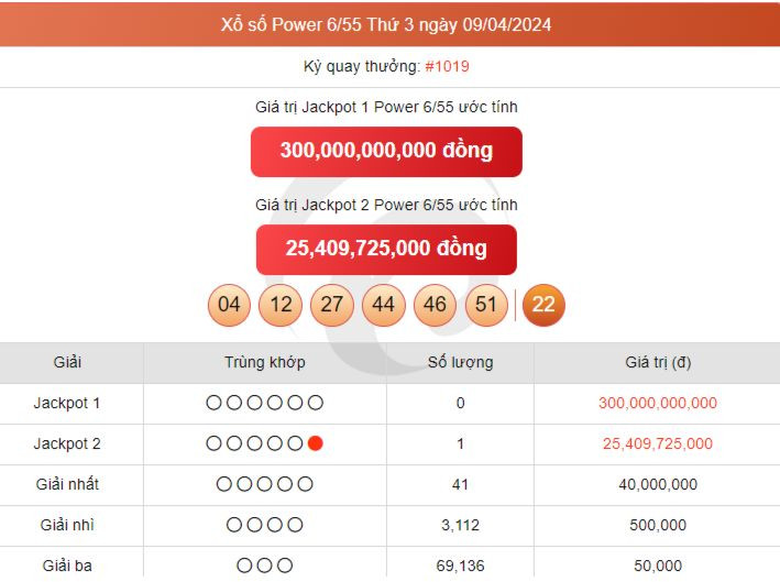 Kết quả xổ số Vietlott ngày 9/4/2024