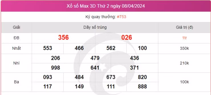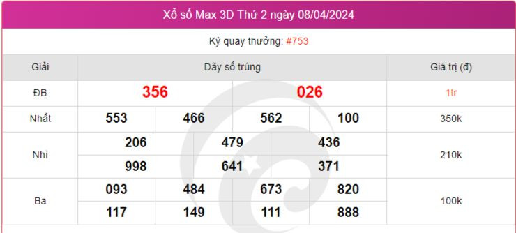 Giải Ba: Trùng khớp 3 số, giải thưởng trị giá 30.000 đồng.