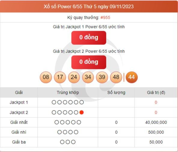 Kết quả xổ số Vietlott Power 6/55 thứ Năm ngày 9/11/2023