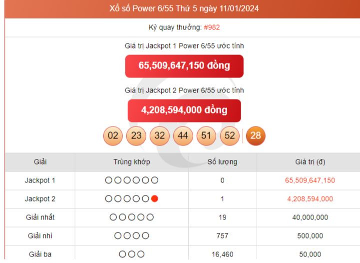 Giải Jackpot: trùng khớp 6 số, giải thưởng trị giá tối thiểu 12 tỷ đồng và tích lũy.
