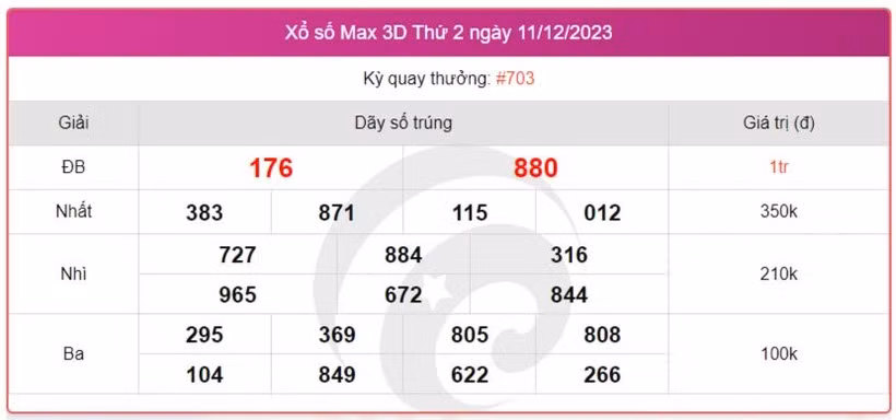 Giải Ba: trùng khớp 3 số, giải thưởng trị giá 30.000 đồng.