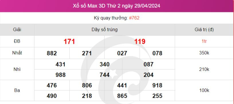 Giải Ba: Trùng khớp 3 số, giải thưởng trị giá 30.000 đồng.