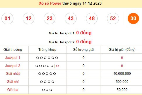 Xổ số Power 6/55, kết quả xổ số Vietlott ngày thứ Ba 12/12/2023