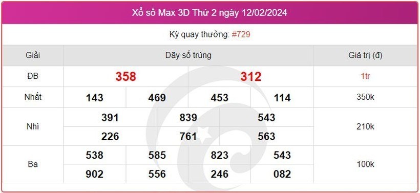 Kết quả xổ số Vietlott ngày 12/2/2024