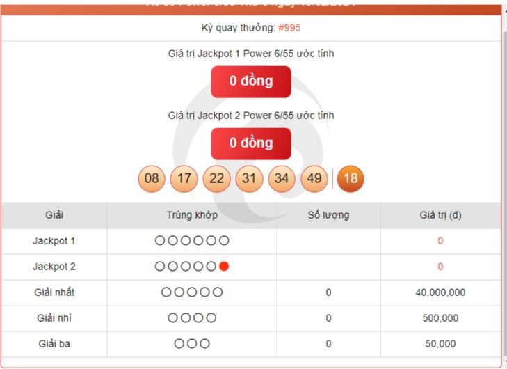 Giải Jackpot: trùng khớp 6 số, giải thưởng trị giá tối thiểu 12 tỷ đồng và tích lũy.