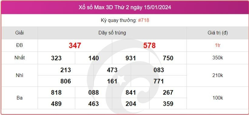 - Giải nhất: Trùng khớp 5 trong 6 số đầu tiên, trị giá 40 triệu đồng cho các vé
