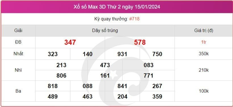 Các số dự thưởng trùng khớp với kết quả quay thưởng, không cần theo thứ tự.
