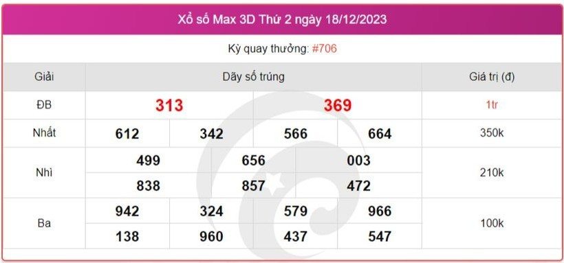 Các số dự thưởng trùng khớp với kết quả quay thưởng, không cần theo thứ tự.