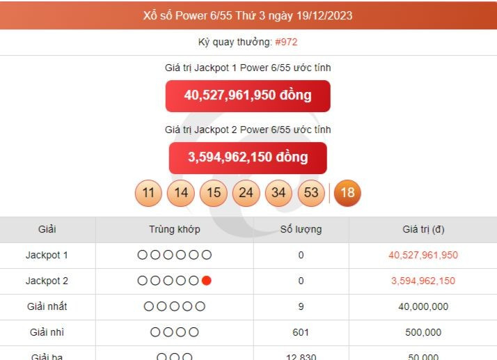 Vietlott 21/12 - Xổ số Power 6/55 21/12 - Vietlott Power 21/12 - Kết quả xổ số Vietlott thứ Năm ngày 21/12 /2023