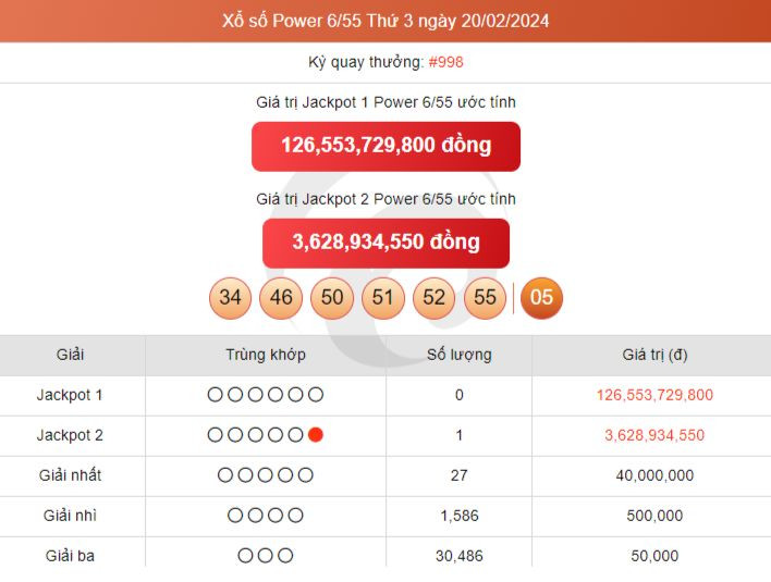 Kết quả xổ số Vietlott ngày 20/2/2024