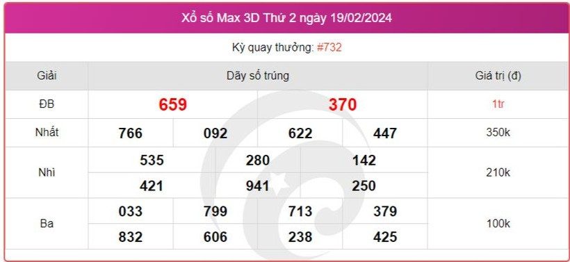 Giải Nhì: trùng khớp 4 số, giải thưởng trị giá 300.000 đồng.