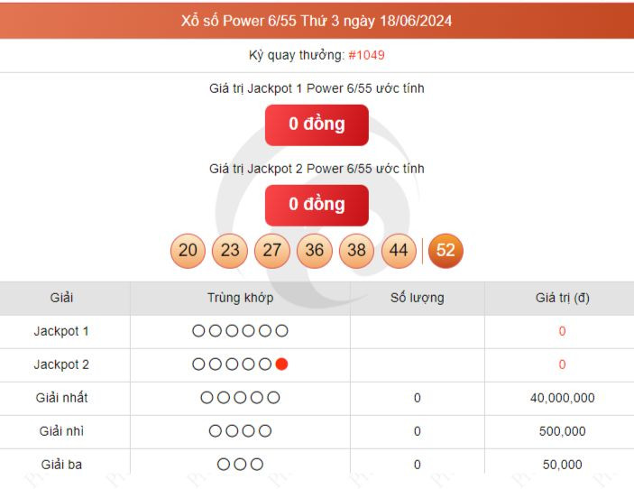 Giải Jackpot: Trùng khớp 6 số, giải thưởng trị giá tối thiểu 12 tỷ đồng và tích lũy.
