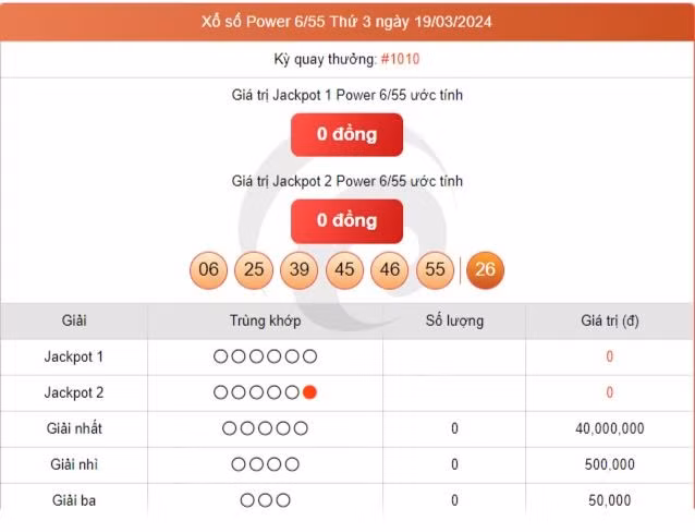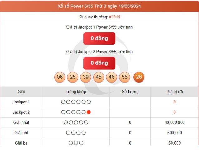 Kết quả xổ số Vietlott ngày 19/3/2024