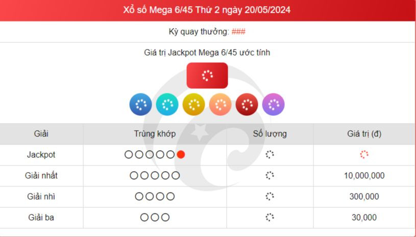 - Giải nhất: Trùng khớp 5 trong 6 số đầu tiên, trị giá 40 triệu đồng cho các vé.