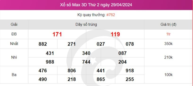 Kết quả xổ số Vietlott ngày 29/4/2024