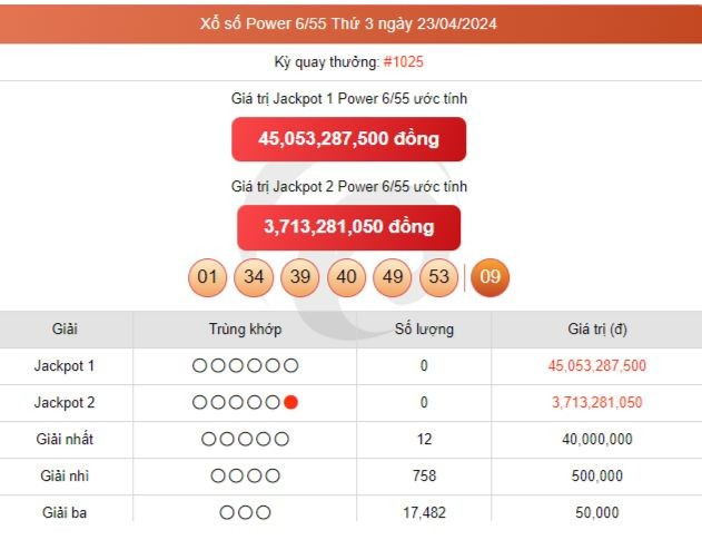 Kết quả xổ số Vietlott ngày 23/4/2024