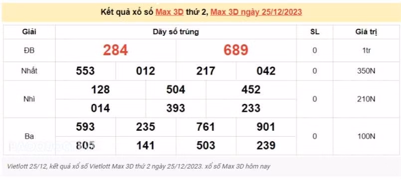 Kết quả xổ số Vietlott ngày 25/12