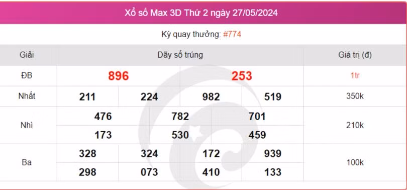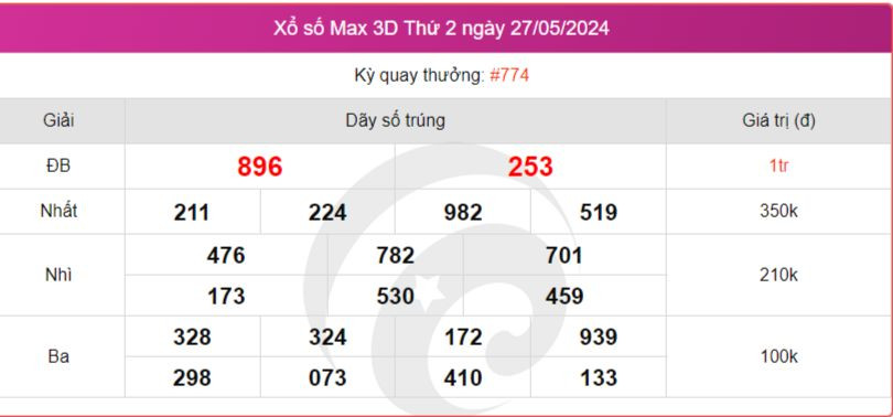 - Giải nhất: Trùng khớp 5 trong 6 số đầu tiên, trị giá 40 triệu đồng cho các vé.