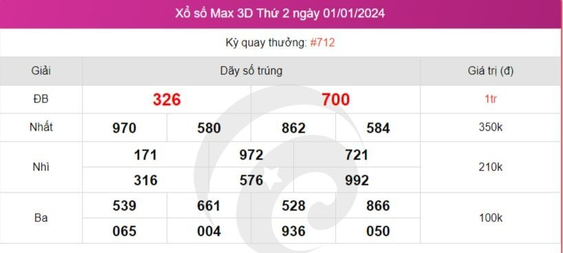 Giải Nhì: trùng khớp 4 số, giải thưởng trị giá 300.000 đồng.