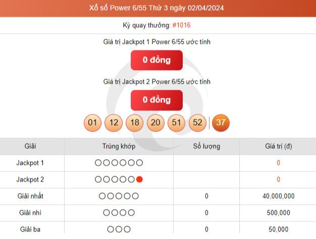 Xem kết quả xổ số Vietlott Power 6/55 4/4, theo dõi KQXS Vietlott mới nhất trên Báo Giáo dục và Thời đại để không bỏ lỡ thời gian nhận thưởng.