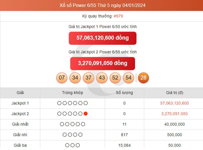 Giải Jackpot: trùng khớp 6 số, giải thưởng trị giá tối thiểu 12 tỷ đồng và tích lũy.