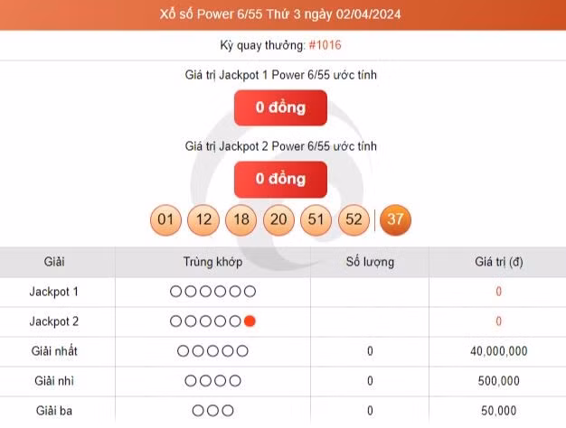 Kết quả xổ số Vietlott ngày 2/4/2024