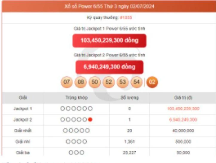 Kết quả xổ số Vietlott ngày 3/7/2024