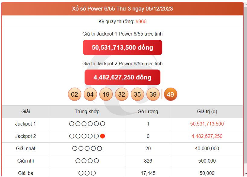 Kết quả xổ số Vietlott thứ Ba ngày 5/12