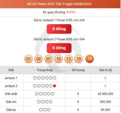 Vietlott 6/6 - Xổ số Power 6/55 6/6 - Vietlott Power 6/6 - Kết quả xổ số Vietlott thứ Năm ngày 6/6/2024