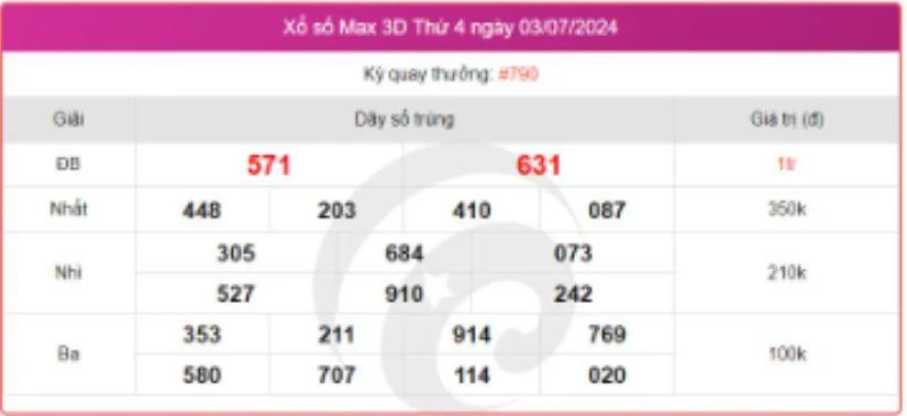 - Giải ba: Các vé trùng 3 trong 6 số đầu tiên, trị giá 50.000 đồng.