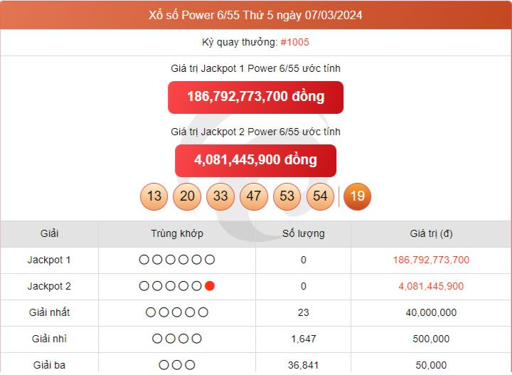 Kết quả xổ số Vietlott ngày 7/3/2024