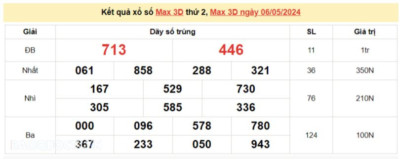 Các số dự thưởng trùng khớp với kết quả quay thưởng, không cần theo thứ tự.
