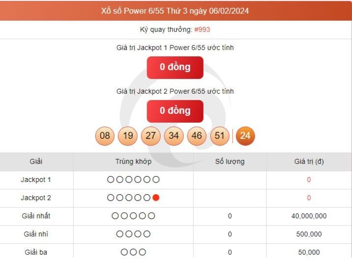 Kết quả xổ số Vietlott ngày 6/2/2024